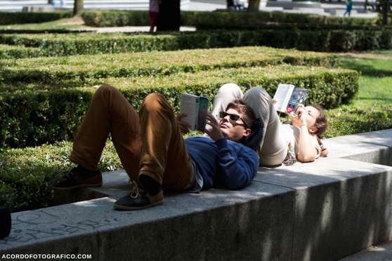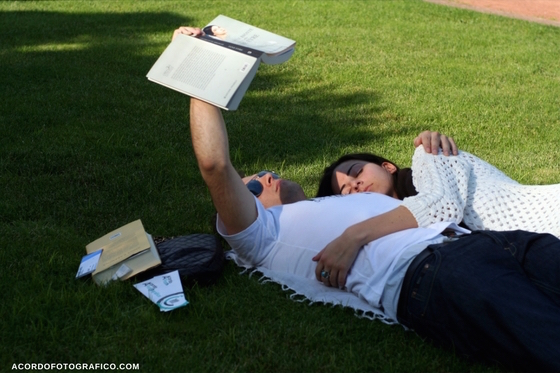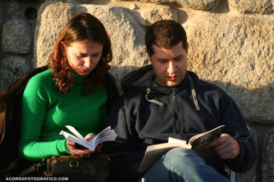 O que a seguir descrevo não implica, necessariamente, que os membros de um casal leiam o mesmo livro em simultâneo e no mesmo lugar, ou que um leia em voz alta para o outro. Do ponto de vista biblioterapêutico esses seriam os cenários ideais. Mas todos sabemos o quanto o ideal pode esbarrar com a vida real, onde é mais provável aproveitarmos a hora de almoço ou o tempo passado nos transportes públicos para pegarmos solitariamente num livro. Digamos que já será muito bom se ambos lerem regularmente, ainda que livros diferentes e em momentos diferentes. Estou certa que, volta e meia, conseguirão conversar sobre o que estão a ler e até coincidir no lugar onde escolhem ler: numa esplanada, num areal à beira mar, no sofá da sala ou aninhados na cama. E este já é um bom ponto de partida.