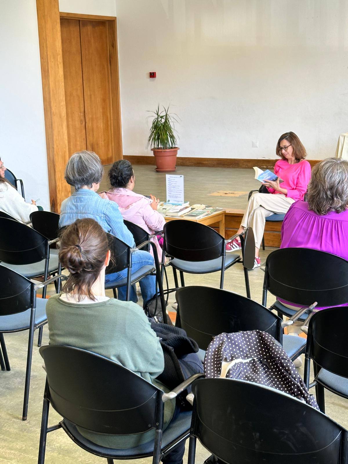 A minha primeira deslocação foi a FARO e a uma biblioteca municipal onde já tinha trabalhado em 2021. Regressei para dinamizar a oficina “Cérebro Leitor” — na qual proponho aos participantes que acompanhemos o Homo Sapiens a partir do momento em que começou a ler; vejamos como evoluiu essa capacidade e que impacto teve na vida de todos; e descubramos o que acontece no cérebro quando lemos uma palavra ou um livro inteiro, o que transborda para as nossas vidas a partir da leitura profunda e que desafios impõe a leitura no digital —; para mediar um Círculo de Biblioterapia com um grupo de reclusos do Estabelecimento Prisional da cidade, no âmbito da iniciativa Biblioteca Fora de Portas — o texto que escolhi para a ocasião foi “Tudo é Possível”, de Kobi Yamada —; e para moderar a sessão mensal do Clube de Leitura da biblioteca municipal, que comemora este ano o seu 20.º aniversário — o livro que sugeri que lêssemos foi “Natureza Urbana”, de Joana Bértholo, uma autora e um conto que nenhum dos membros do clube conheciam e que foram acolhidos por todos com enorme entusiasmo, abrindo o apetite para a exploração de outras obras da autora.